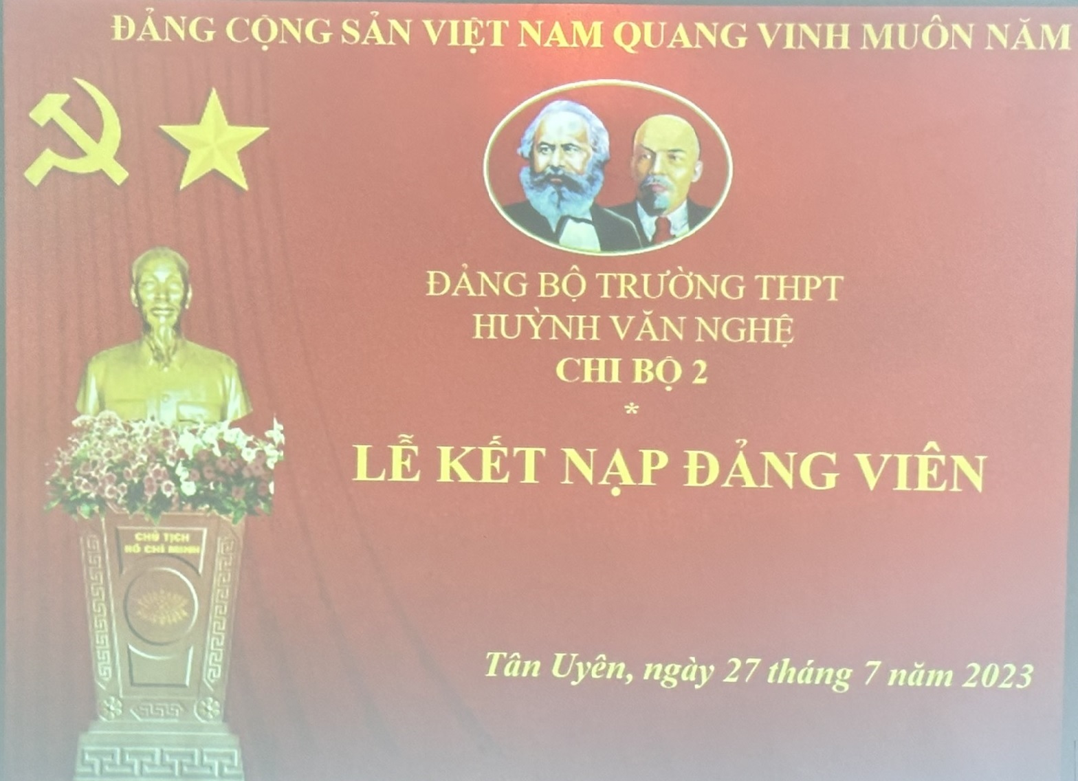 Tham dự Lễ kết nạp Đảng viên mới của Chi bộ 2 có đồng chí Nguyễn Ngọc Trúc – Uỷ viên Ban thường vụ Thành đoàn, đồng chí Trần Thị Ngọc Vân – PBT Đảng bộ trường THPT Huỳnh Văn Nghệ, đồng chí Lê Quốc Anh – Bí thư Đoàn trường THPT Huỳnh Văn Nghệ, cùng với các đồng chí trong chi uỷ, các đảng viên chi bộ 2 đều tham dự đầy đủ.