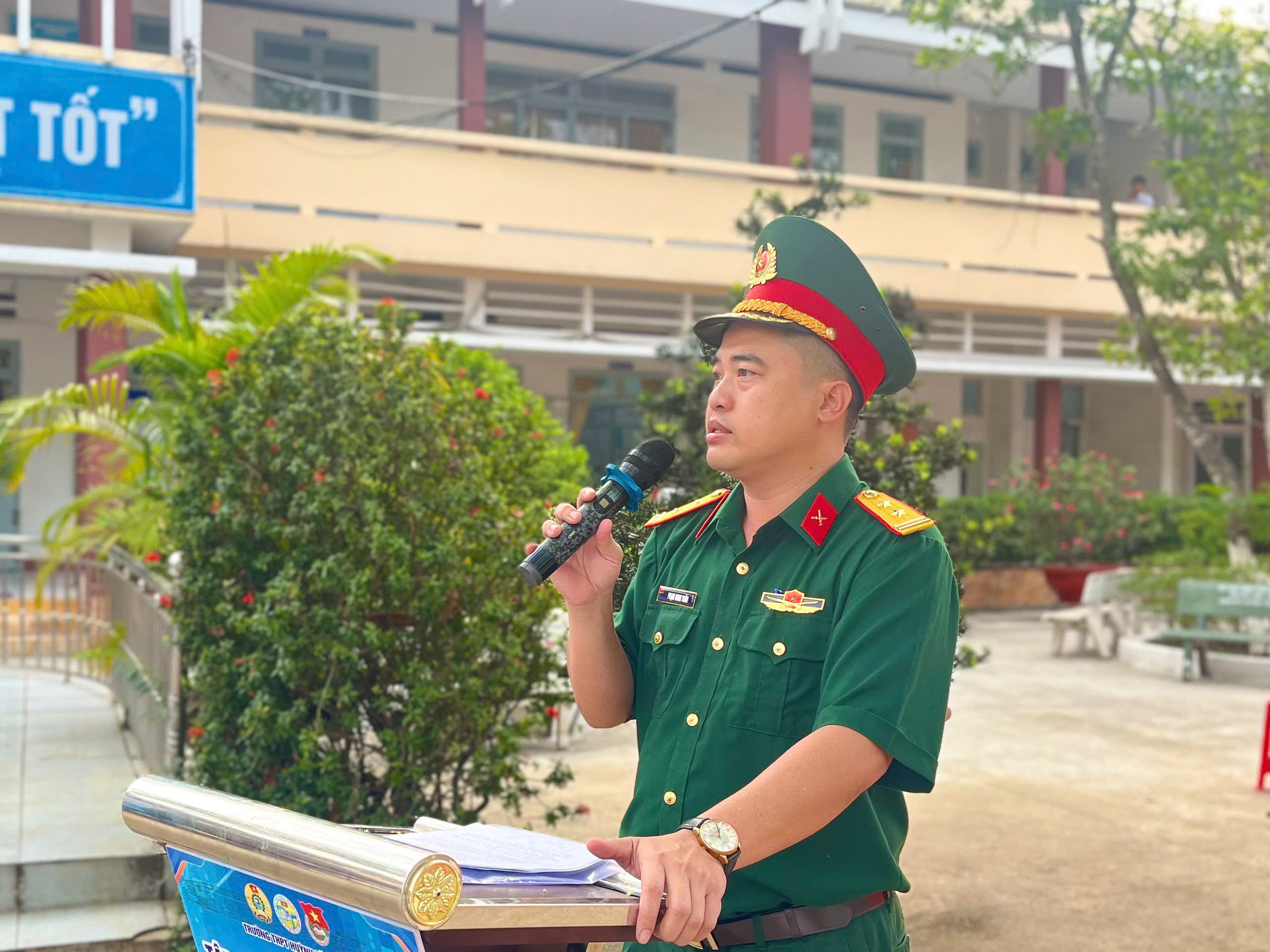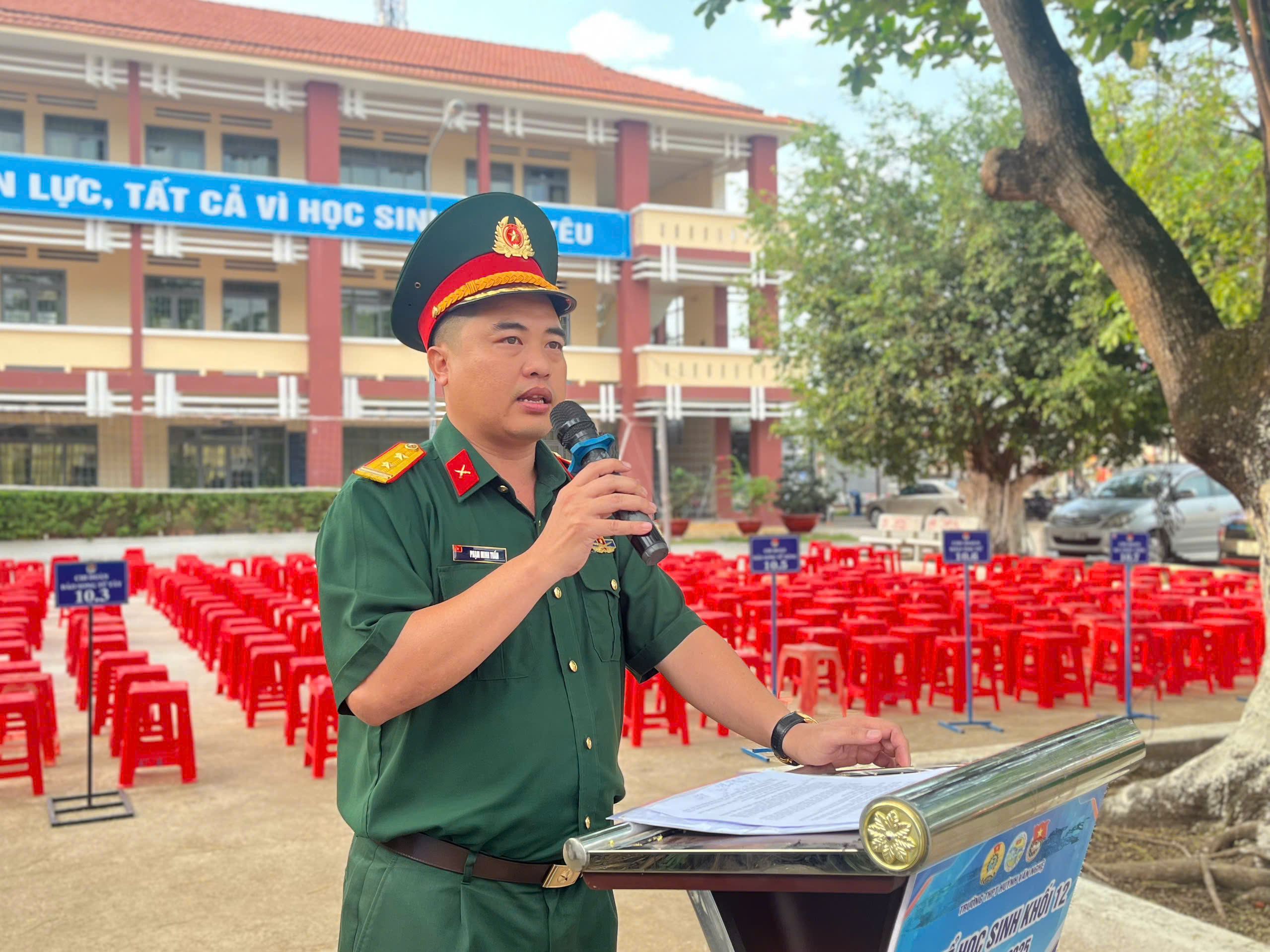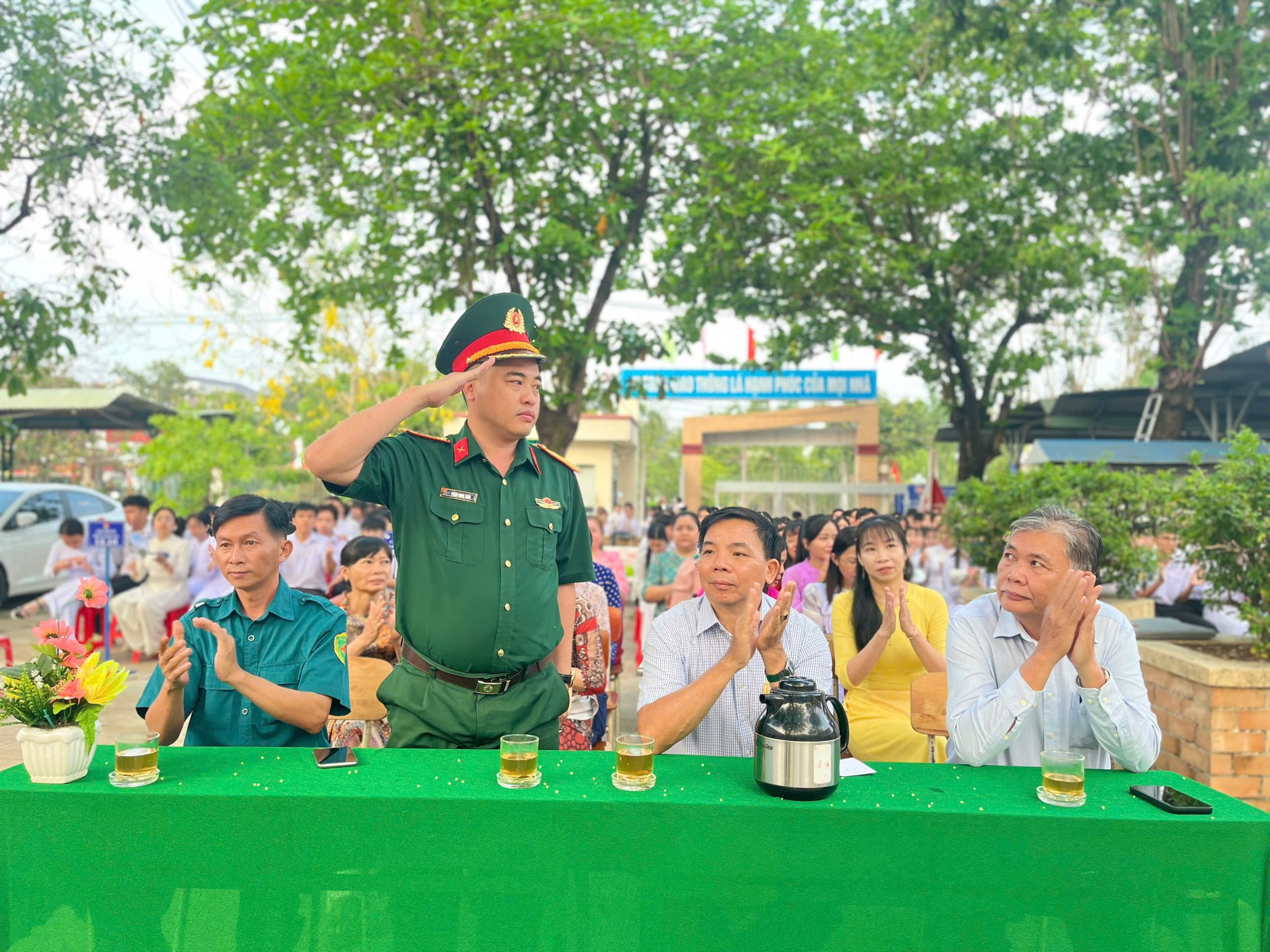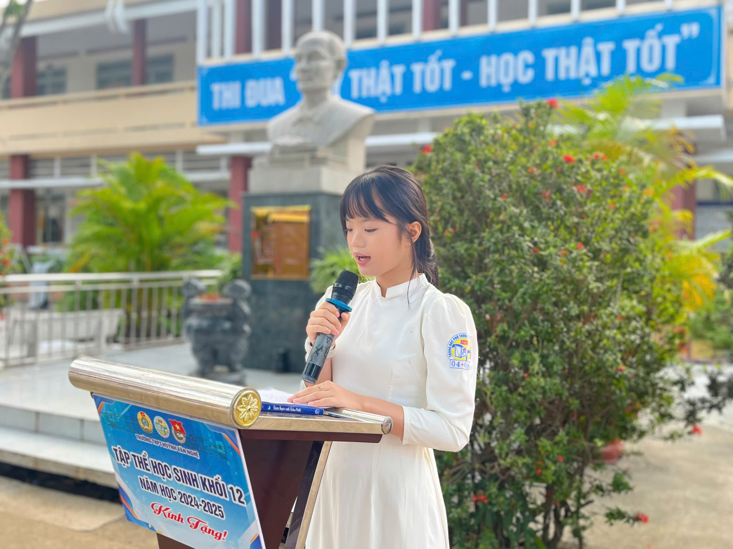 Ngay sau nghi thức chào cờ trang trọng, đại diện Ban Giám hiệu nhà trường đã phát biểu khai mạc và chính thức phát động cuộc thi “Sáng kiến bảo đảm trật tự trường học về phòng, chống bạo lực học đường”. Cuộc thi hướng đến mục tiêu nâng cao nhận thức, trách nhiệm của học sinh trong việc xây dựng môi trường học đường an toàn, lành mạnh, thân thiện; khuyến khích các em đề xuất những ý tưởng, giải pháp thiết thực, khả thi nhằm ngăn ngừa và đẩy lùi tình trạng bạo lực học đường. Đây là hoạt động có ý nghĩa thiết thực, góp phần cụ thể hóa phong trào thi đua “Dạy thật tốt – Học thật tốt” của nhà trường.