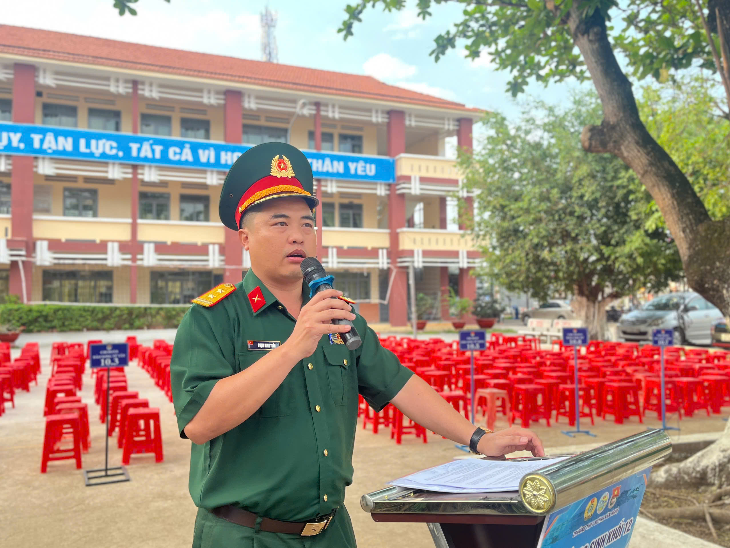 Đặc biệt, chương trình còn lồng ghép nội dung tư vấn tuyển sinh dành cho học sinh khối 12. Bộ phận Tư vấn tuyển sinh cung cấp những thông tin quan trọng về điều kiện tuyển sinh, chỉ tiêu, chế độ đào tạo và cơ hội nghề nghiệp. Hoạt động này giúp học sinh có thêm kênh thông tin chính thống, định hướng rõ ràng hơn trong việc lựa chọn ngành nghề phù hợp với năng lực và nguyện vọng của bản thân.