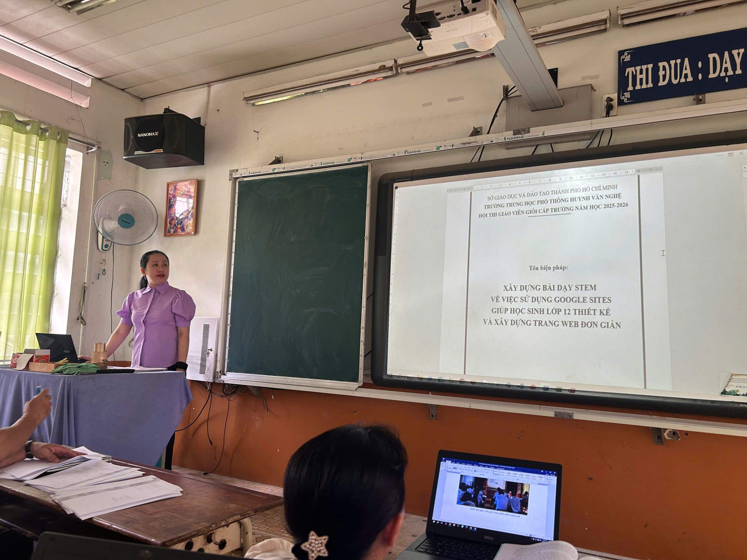 • Cô Nguyễn Thị Quỳnh Trúc báo cáo đề tài “Xây dựng bài dạy STEM về việc sử dụng phần mềm Google Sites giúp học sinh lớp 12 thiết kế và xây dựng trang web đơn giản”. Biện pháp được triển khai bài bản qua quy trình 5 hoạt động kỹ thuật, thể hiện rõ tính liên môn, giúp học sinh vừa làm chủ công nghệ, vừa phát triển tư duy sáng tạo và kỹ năng làm việc nhóm hiệu quả.