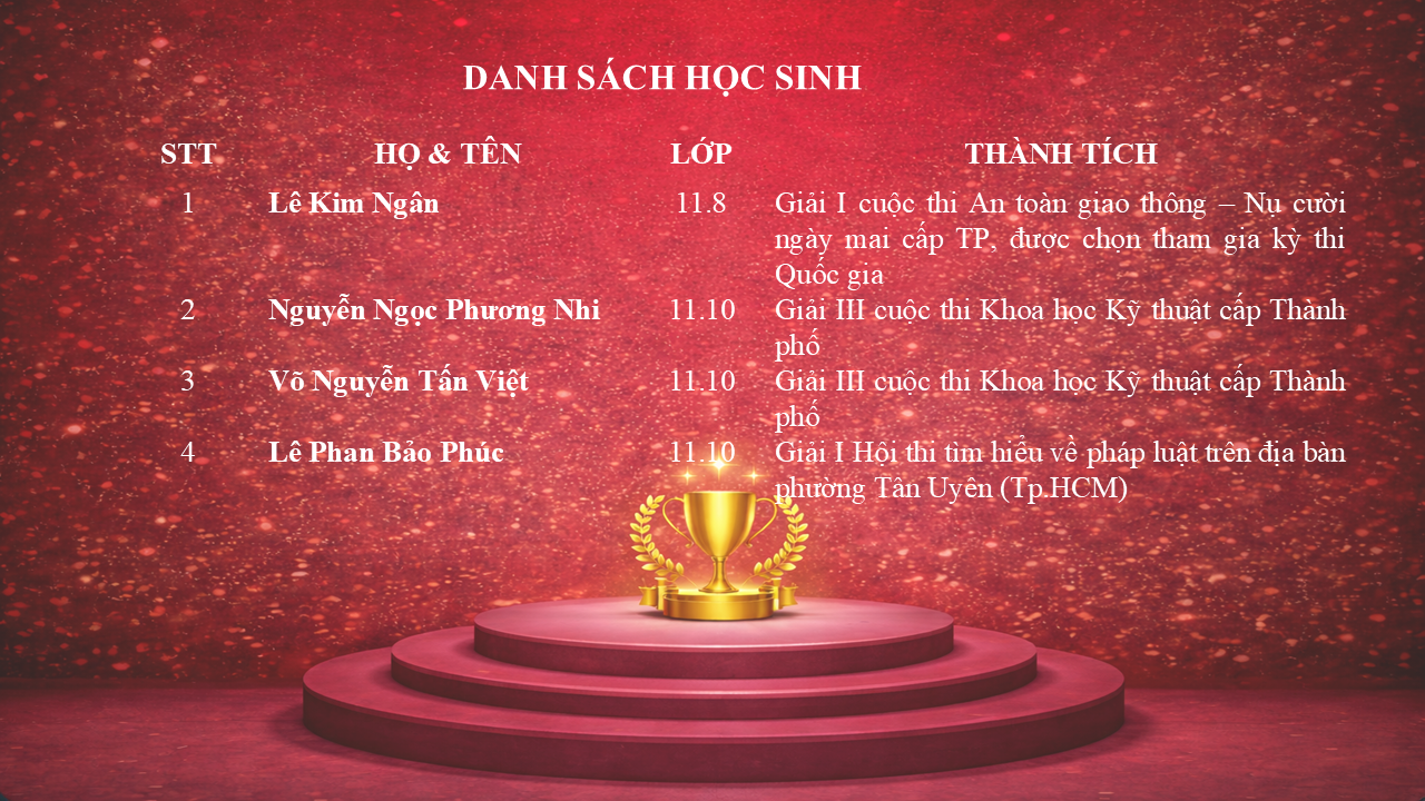 CÁC CUỘC THI, KHOA HỌC KĨ THUẬT, SỞ GIÁO DỤC TỔ CHỨC - PHÁT ĐỘNG, THÔNG TIN CHUNG, TIN MỚI, TIN NỘI BỘ VINH DANH VÀ CHÚC MỪNG QUÝ THẦY CÔ VÀ HỌC SINH ĐẠT GIẢI CÁC KỲ THI, HỘI THI CẤP THÀNH PHỐ ĐỢT 2 NĂM HỌC 2025 – 2026 27 Tháng 1, 202627 Tháng 1, 2026 - Trường THPT Huỳnh Văn Nghệ - 210 lượt xem Bài viết liên quan:KẾ HOẠCH Tổ chức Hội nghị viên chức, người lao động…Trường THPT Huỳnh Văn Nghệ - Sở Giáo dục đào tạo…NIỀM VINH DỰ CỦA THANH NIÊN TRẺ TIÊU BIỂUTrường THPT Huỳnh Văn Nghệ đạt thành tích tại Kỳ thi…KẾ HOẠCH Tổ chức cuộc thi khoa học kỹ thuật cấp…QUYẾT ĐỊNH Về việc ban hành Quy chế kiểm tra, đánh…